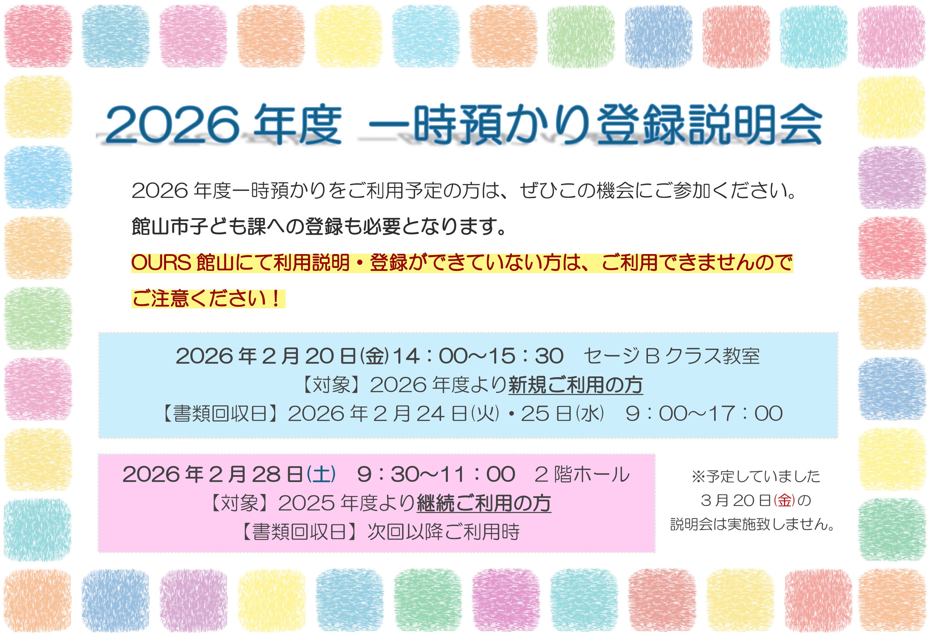 お知らせ 2026年度 一時預かり登録説明会について